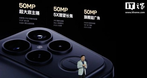 В основной камере — 50 Мп сенсор 1/1,31" (Light Hunter 950), сверхширокоугольный модуль с датчиком 50 Мп 18 мм. Кроме того, есть перископический 50-менапиксельный модуль с 5-кратным зумом, 10-кратным гибридным зумом и с оптической стабилизацией OIS.