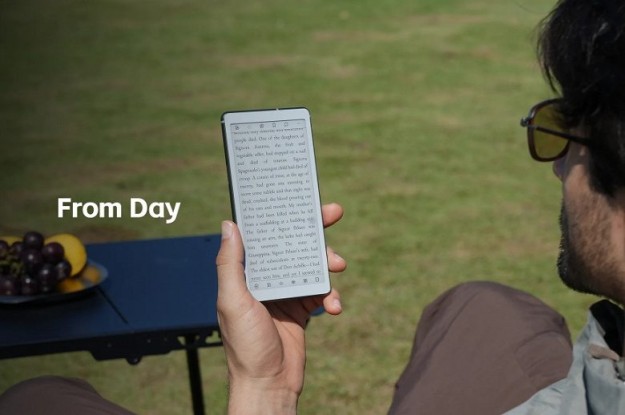 Экран тут имеет диагональ 6,13 дюйма, что примерно соответствует показателю у многих электронных книг, но только соотношение сторон тут смартфонное, а разрешение составляет 1648 х 824 пикселя. Из-за этого площадь экрана меньше, но зато аппарат легко умещается в любой карман. Тем более, что рамка тут хоть и побольше, чем у современных смартфонов, всё же заметно уже большинства обычных электронных книг.