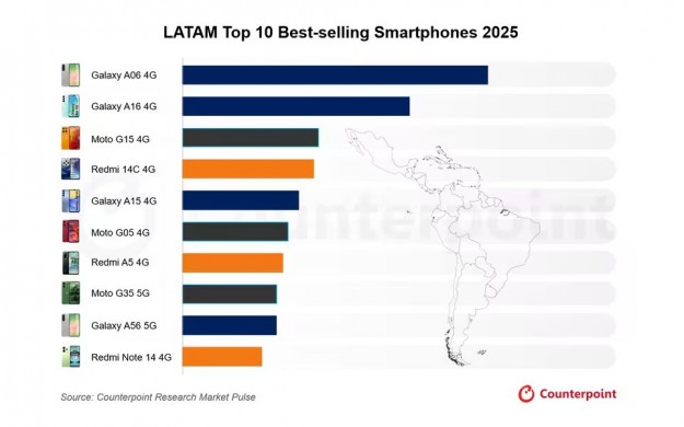 Аналитики добавляют, что Galaxy A06 занял 7% вообще всего рынка Латинской Америки, при этом на всю первую десятку пришлось 33% от всех продаж.