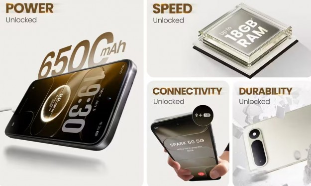 Представлен смартфон Tecno Spark 50 5G с чипом Dimensity 6400 и батареей на 6500 мАч за $179